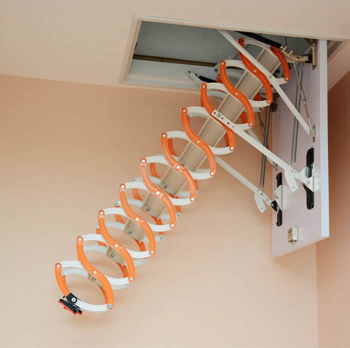 所有的鏈環都是采用扣索的形式,這樣能夠保證在多次使用中不會出現松動。在你不用時,你可以將其推至頂層,然后下面的木板就會自動合上,堵住樓梯口,讓人感覺不到那兒有一個樓梯洞口,所以閣樓伸縮樓梯也叫隱形伸縮樓梯。